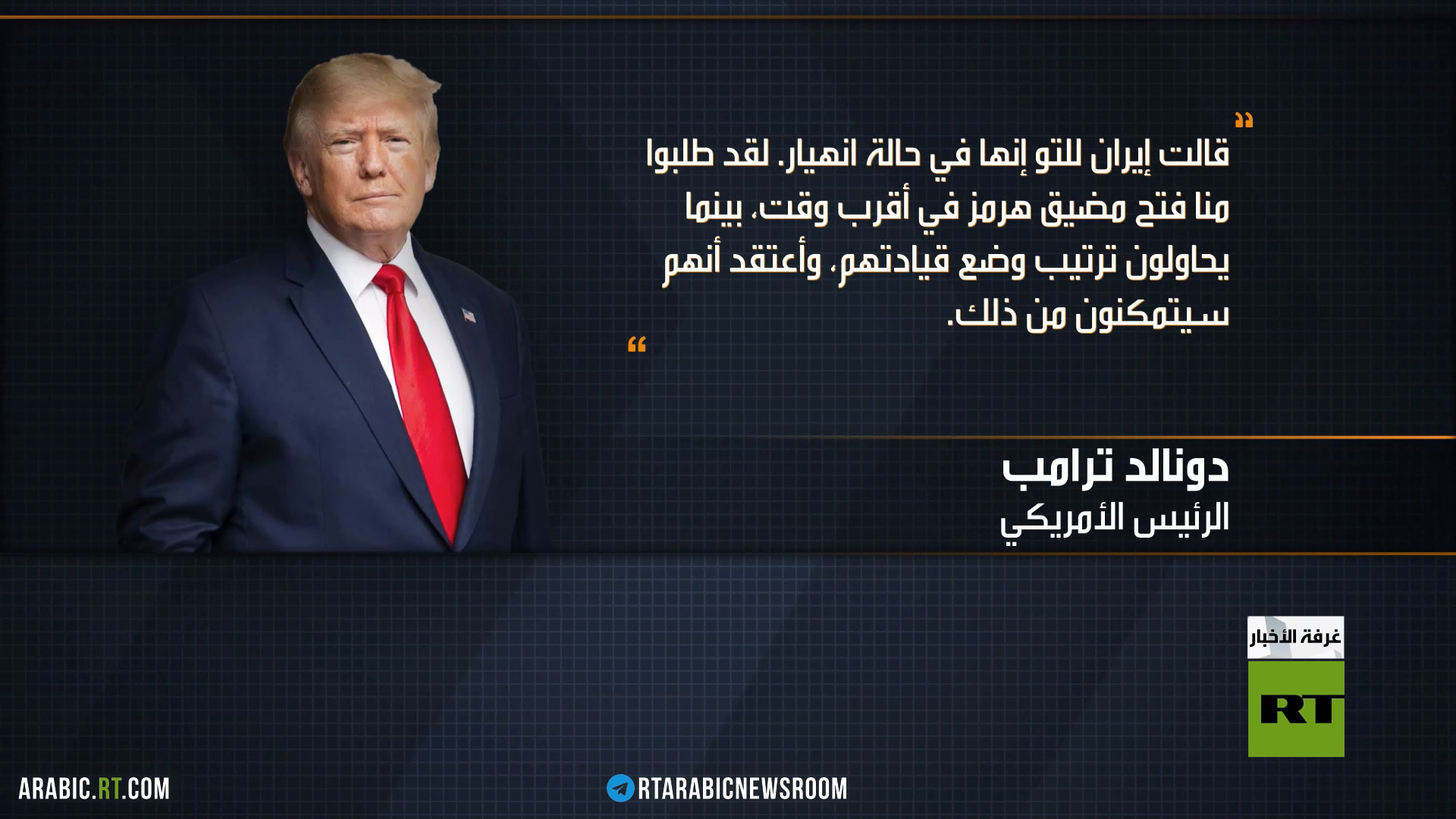 ترامب: إيران أبلغتنا للتو أنها في حالة انهيار وتريد فتح مضيق هرمز بأسرع وقت